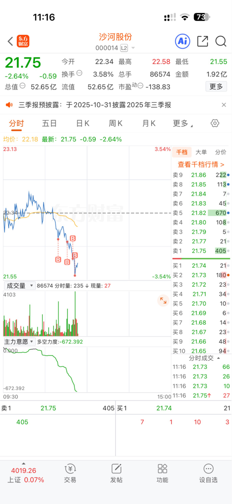 $沙河股份(SZ000014)$ 今天和你杠上了,越跌越买,就等你收盘拉火箭