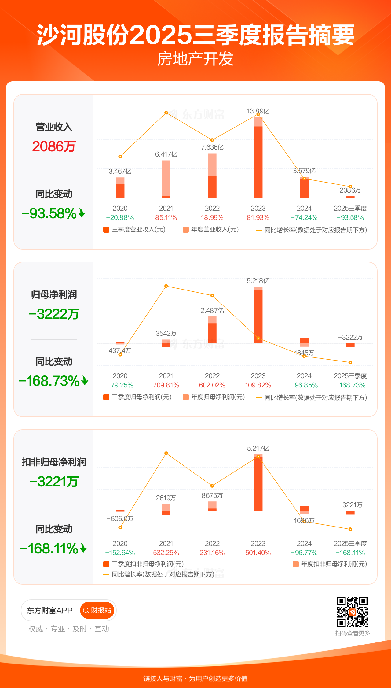 沙河股份10月31日发布2025年三季报显示,公司前三季实现营业收入2085.89万元,同比下滑93.58%;归母净利润-3222.23万元;扣非归母净利润-3221.41万元。