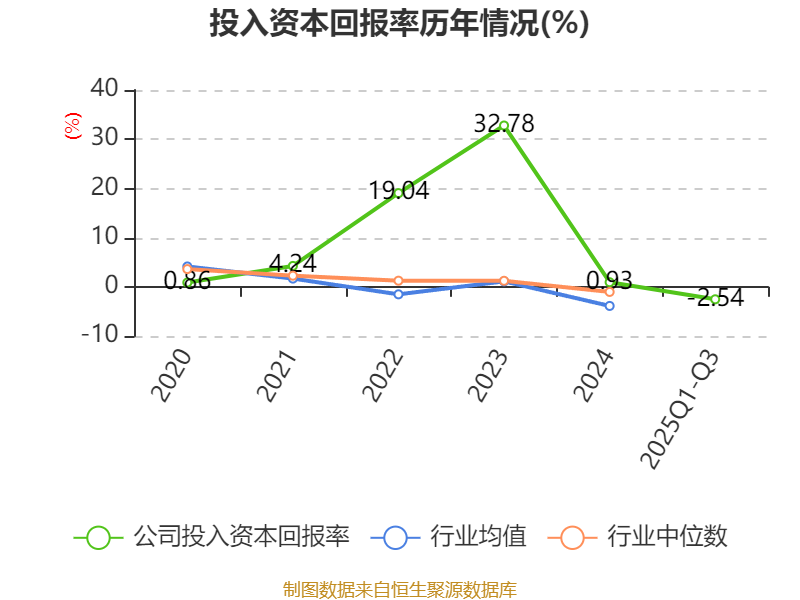 盈利能力方面, 2025年前三季度公司加权平均净资产收益率为-2%,同比下降4.81个百分点。公司2025年前三季度投入资本回报率为-2.54%,较上年同期下降5.14个百分点。