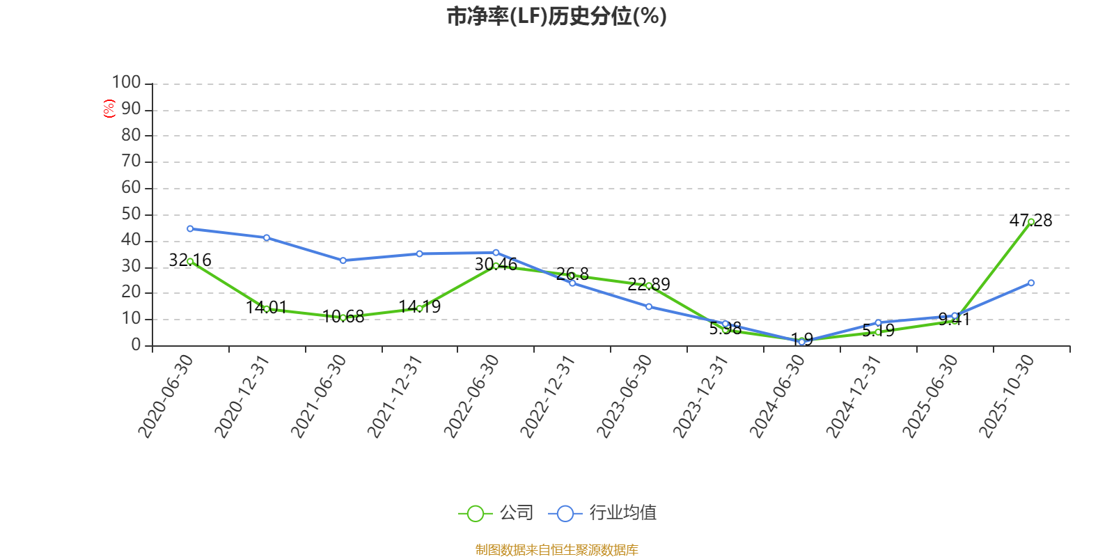 市盈率、市净率为负时,不显示当期分位数,会导致折线图中断。