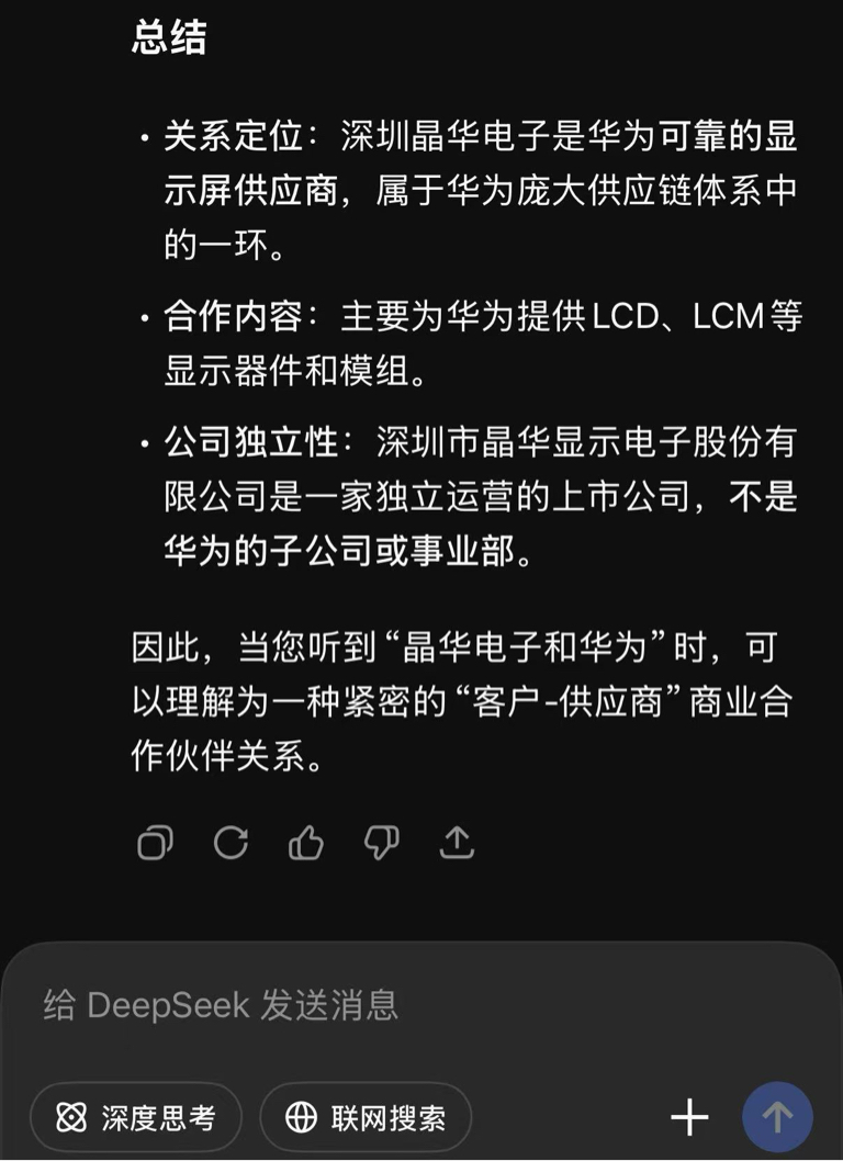 $沙河股份(SZ000014)$ 晶华电子和华为的关系。