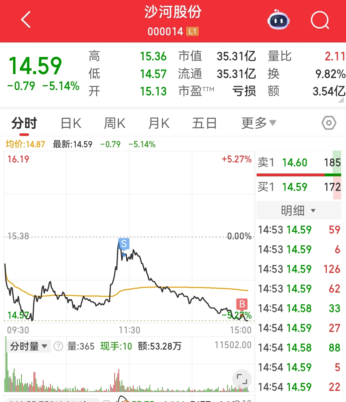 $沙河股份(SZ000014)$ 尾盘接回来,明天且看天津股价继续吹。