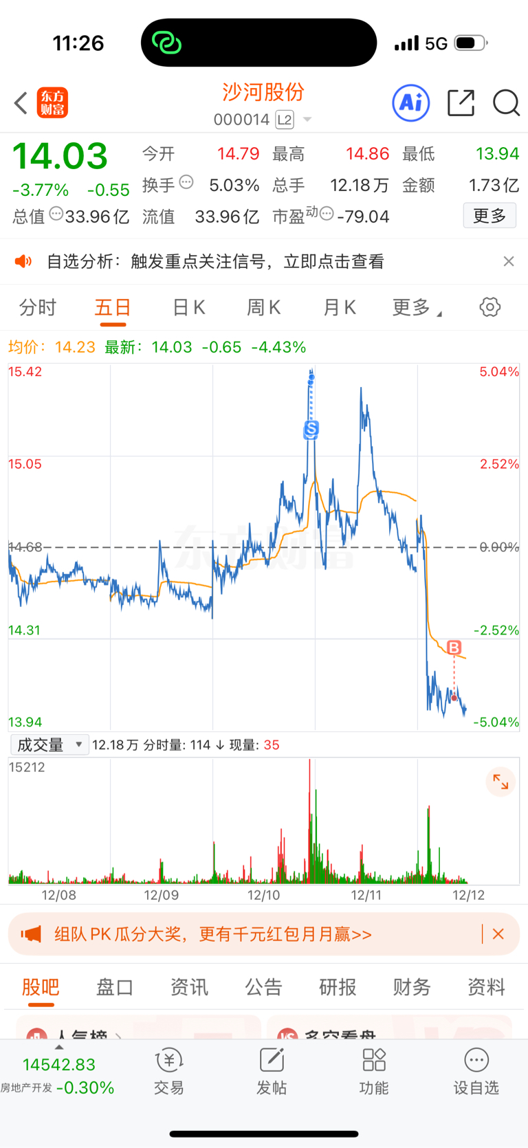 $沙河股份(SZ000014)$ 我又回来了