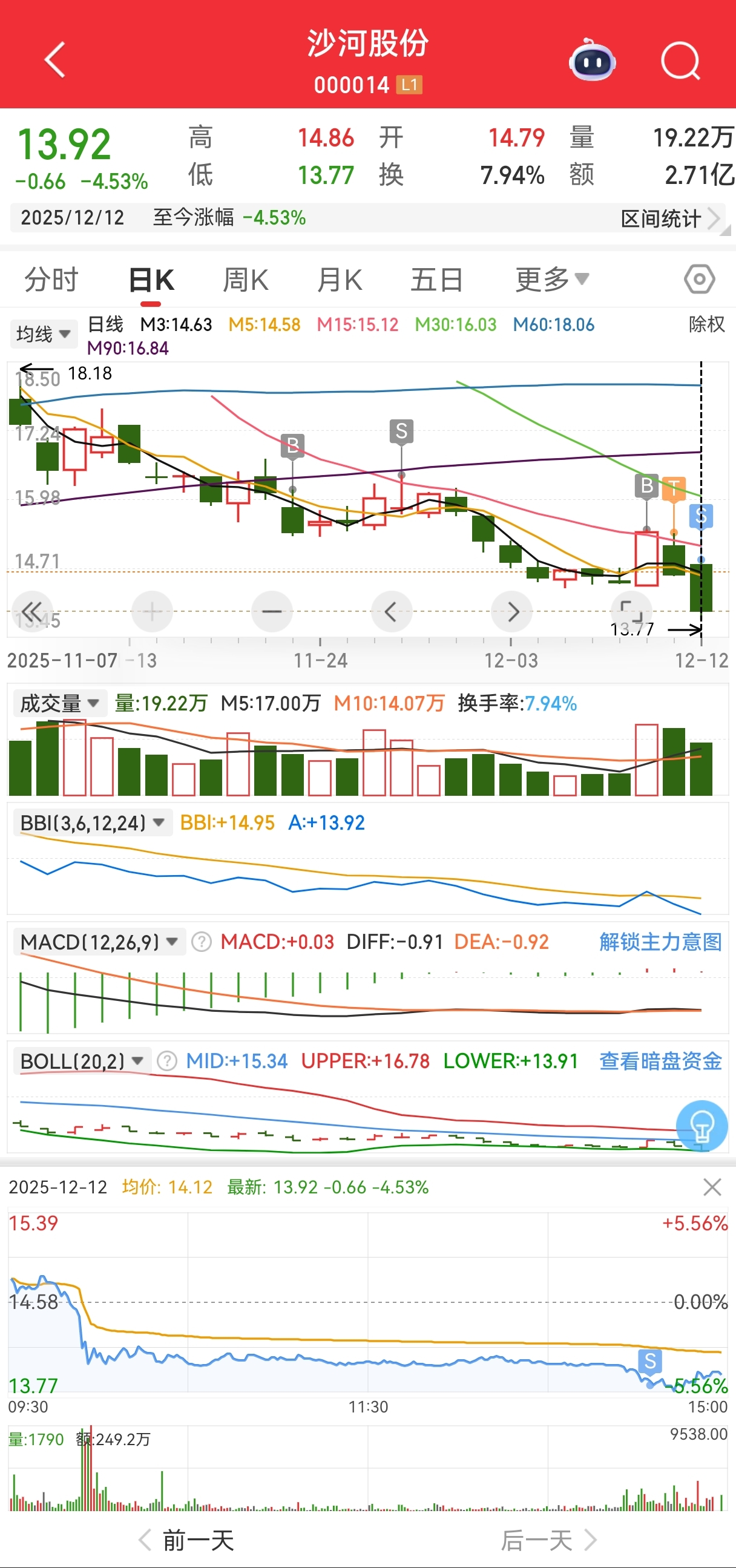 $沙河股份(SZ000014)$ 我就说怎么突然跳水了, 天津股侠自己割肉就割肉了,还要说出来,真服了,没办法,割肉了,真服了那个老六