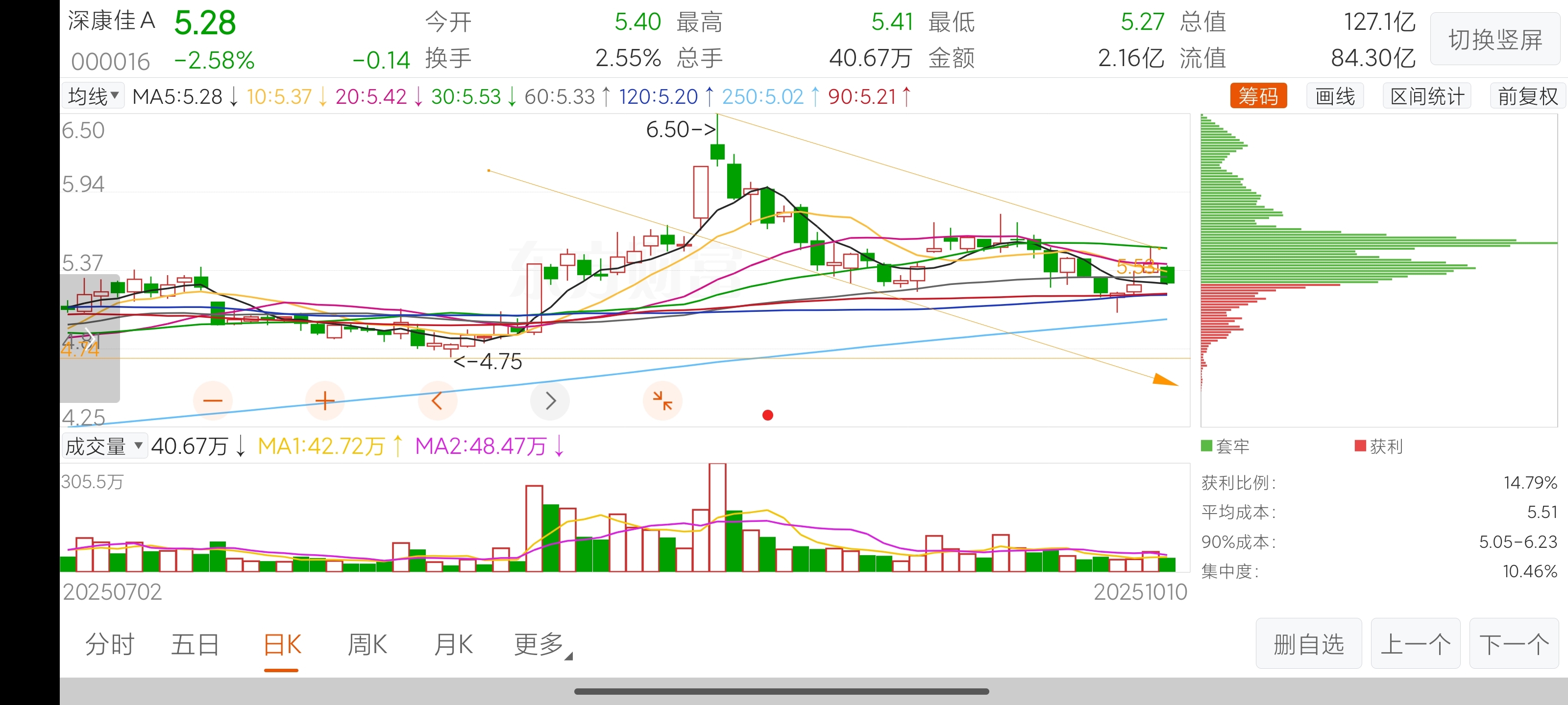 $深康佳A(SZ000016)$ 新一轮的下降通道!也是日线顶分型!