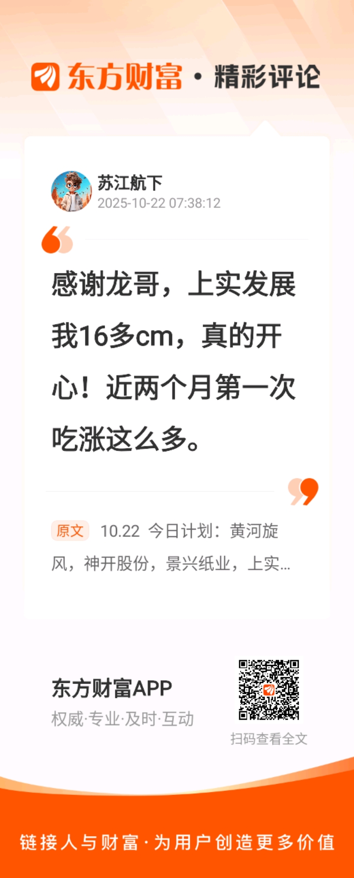 //@苏江航下 :感谢龙哥,上实发展我16多cm,真的开心!近两个月第一次吃涨这么多。 $深康佳A(SZ000016)$$四方达(SZ300179)$$东贝集团(SH601956)$