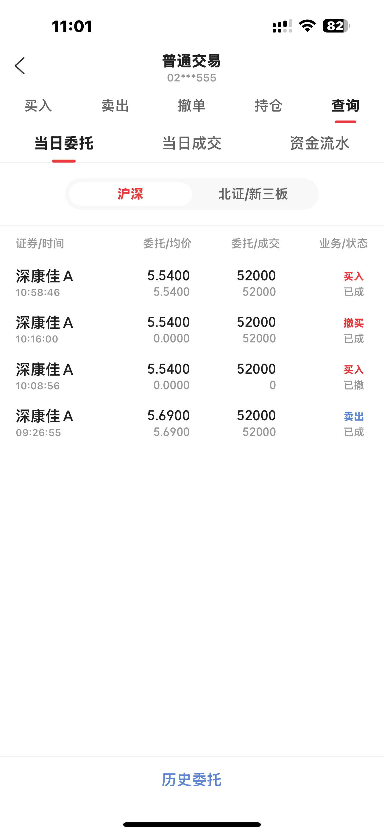 早上集合竞价时5.69卖了5万股,上午收盘前5.54再接回来,这股不行就天天自己