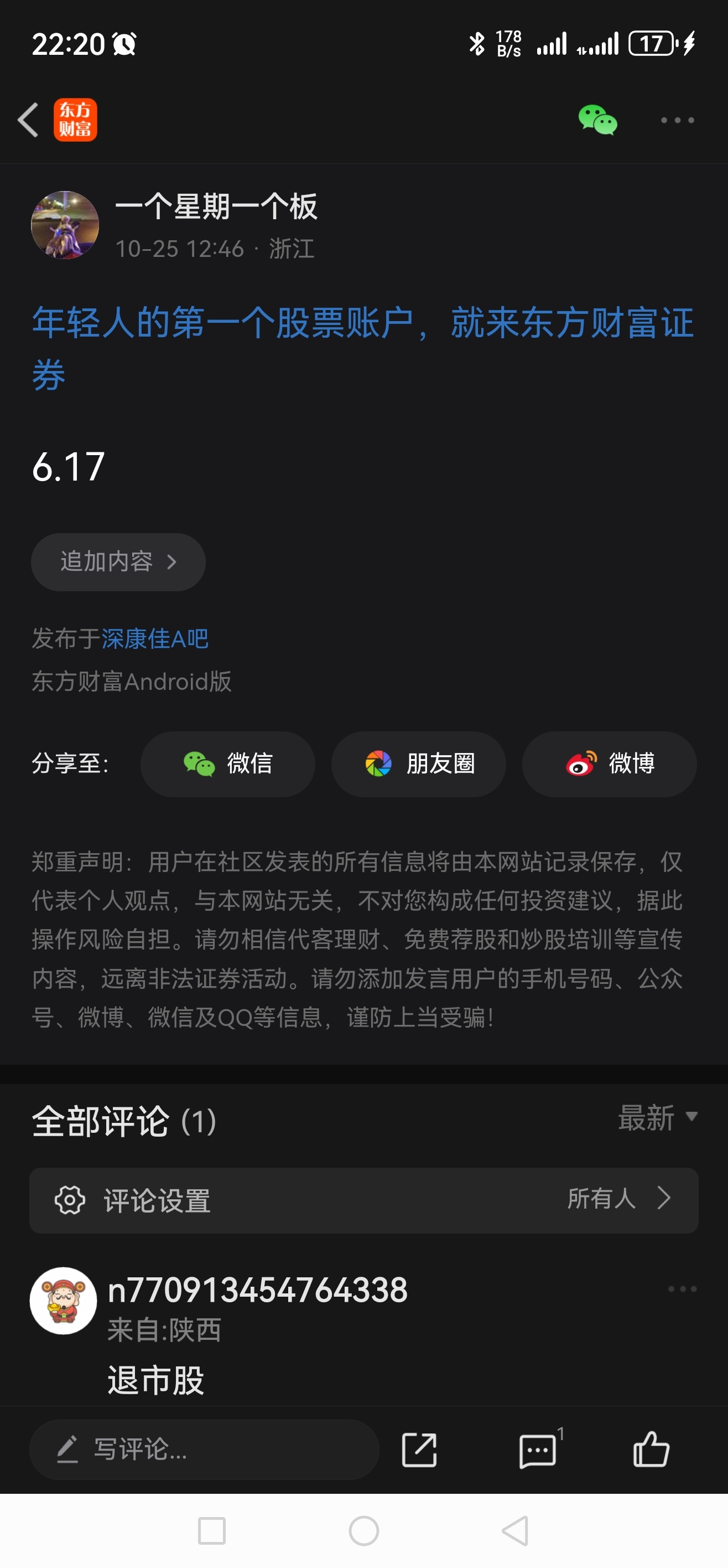 温馨提示: 1.根据《证券法》规定,禁止编造、传播虚假信息或者误导性信息,扰乱证券市场;2.用户在本社区发表的所有资料、言论等仅代表个人观点,与本网站立场无关,不对您构成任何投资建议。用户应基于自己的独立判断,自行决定证券投资并承担相应风险。《东方财富社区管理规定》