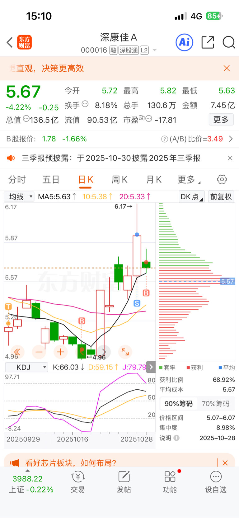 $深康佳A(SZ000016)$ 重仓。昨天卖了1/2,要是今天小幅度下跌,我都打算清仓了。但是今天这个强度的洗盘调整符合预期。就又接回了1/3。顺其自然、放平心态。祝各位大哥大姐一起发财!(纯属个人小白观点,不喜勿喷)