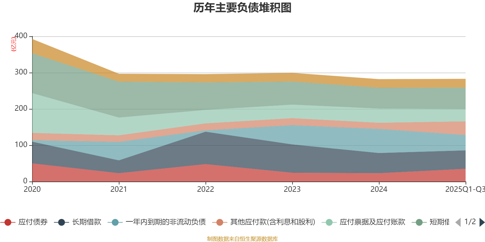 负债重大变化方面,截至2025年三季度末,公司一年内到期的非流动负债较上年末减少36.55%,占公司总资产比重下降7.43个百分点;其他应付款(含利息和股利)较上年末增加124.91%,占公司总资产比重上升7.4个百分点;应付债券较上年末增加52.21%,占公司总资产比重上升4.41个百分点;短期借款较上年末增加3.56%,占公司总资产比重上升1.48个百分点。