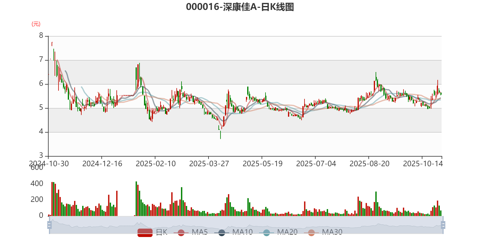中证智能财讯深康佳A(000016)10月30日披露2025年第三季度报告。前三季度公司实现营业总收入76.79亿元,同比下降5.43%;归母净利润亏损9.82亿元,上年同期亏损16.06亿元;扣非净利润亏损15.22亿元,上年同期亏损17.17亿元;经营活动产生的现金流量净额为-10.86亿元,上年同期为-3.91亿元;报告期内,深康佳A基本每股收益为-0.4076元,加权平均净资产收益率为-53.45%。