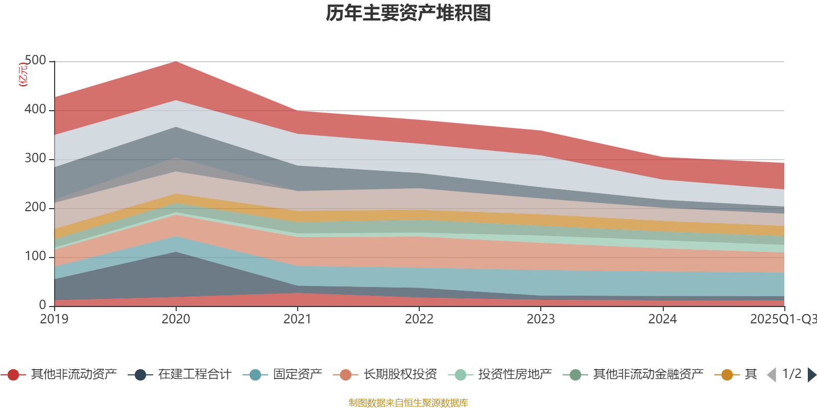 资产重大变化方面,截至2025年三季度末,公司交易性金融资产合计较上年末增加251.38%,占公司总资产比重上升2.51个百分点;货币资金较上年末减少14.88%,占公司总资产比重下降1.54个百分点;长期股权投资较上年末减少13.4%,占公司总资产比重下降1.53个百分点;其他应收款(含利息和股利)较上年末增加15.79%,占公司总资产比重上升0.67个百分点。
