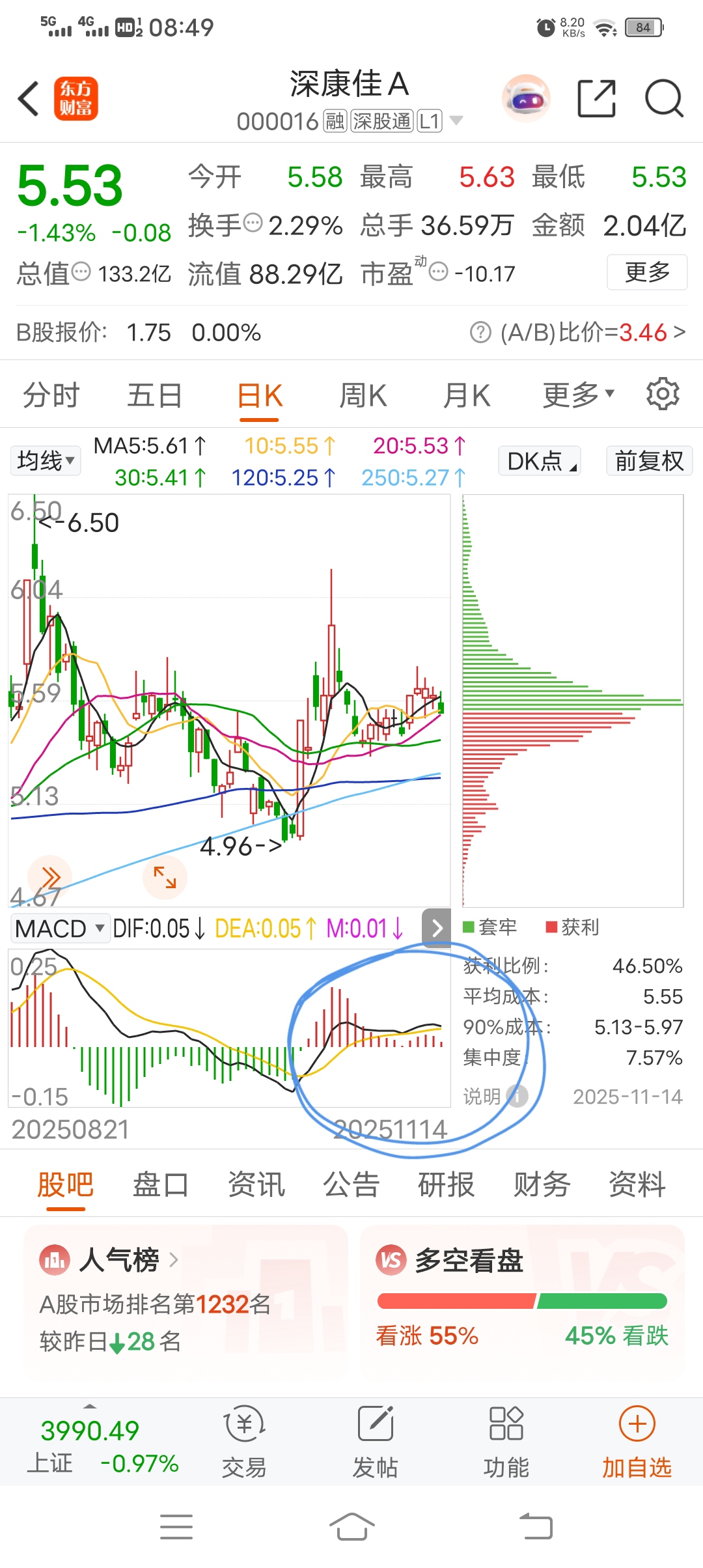 $深康佳A(SZ000016)$ macd有死叉预期,向下回调再继。