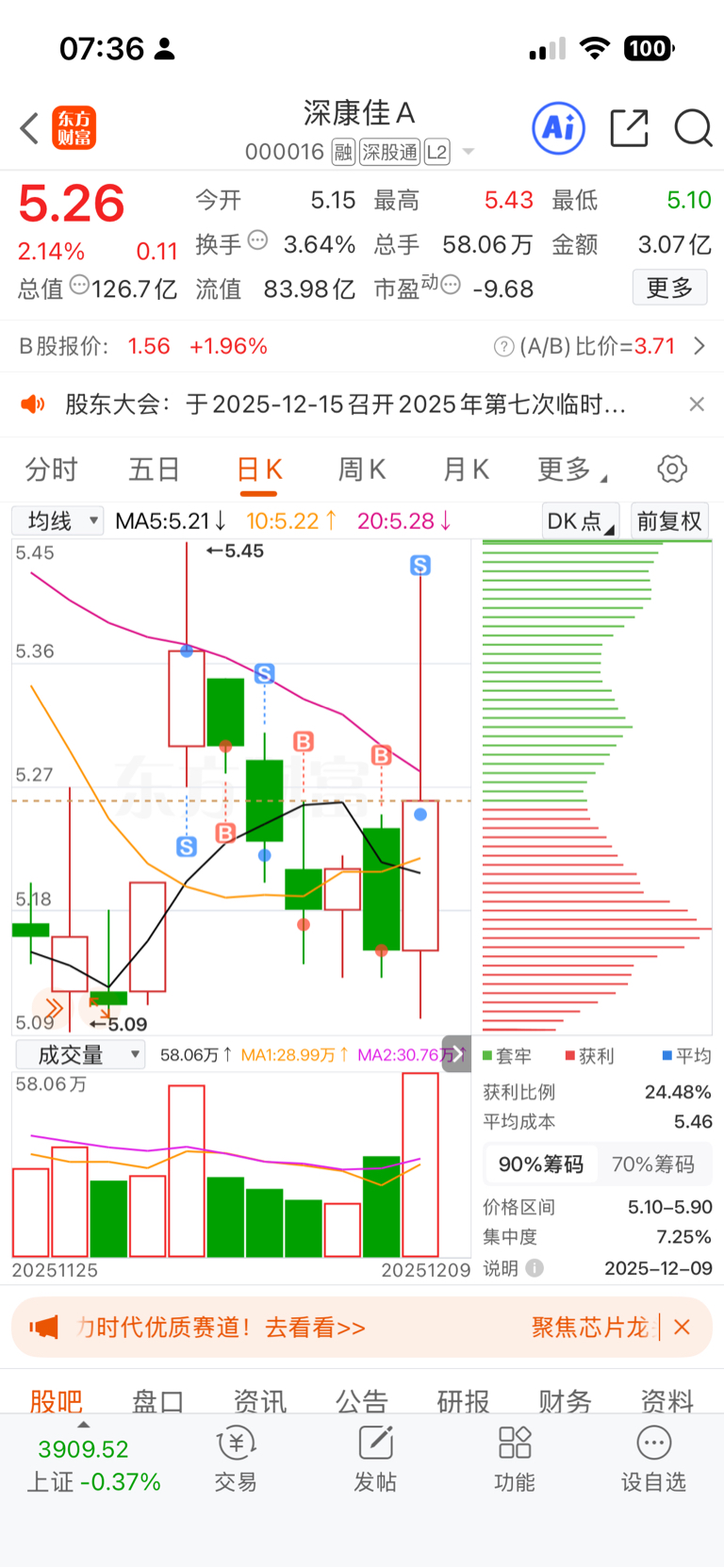 $深康佳A(SZ000016)$ 昨天长上影、量能相对较大。自己胆小,保险点跑了1/3。