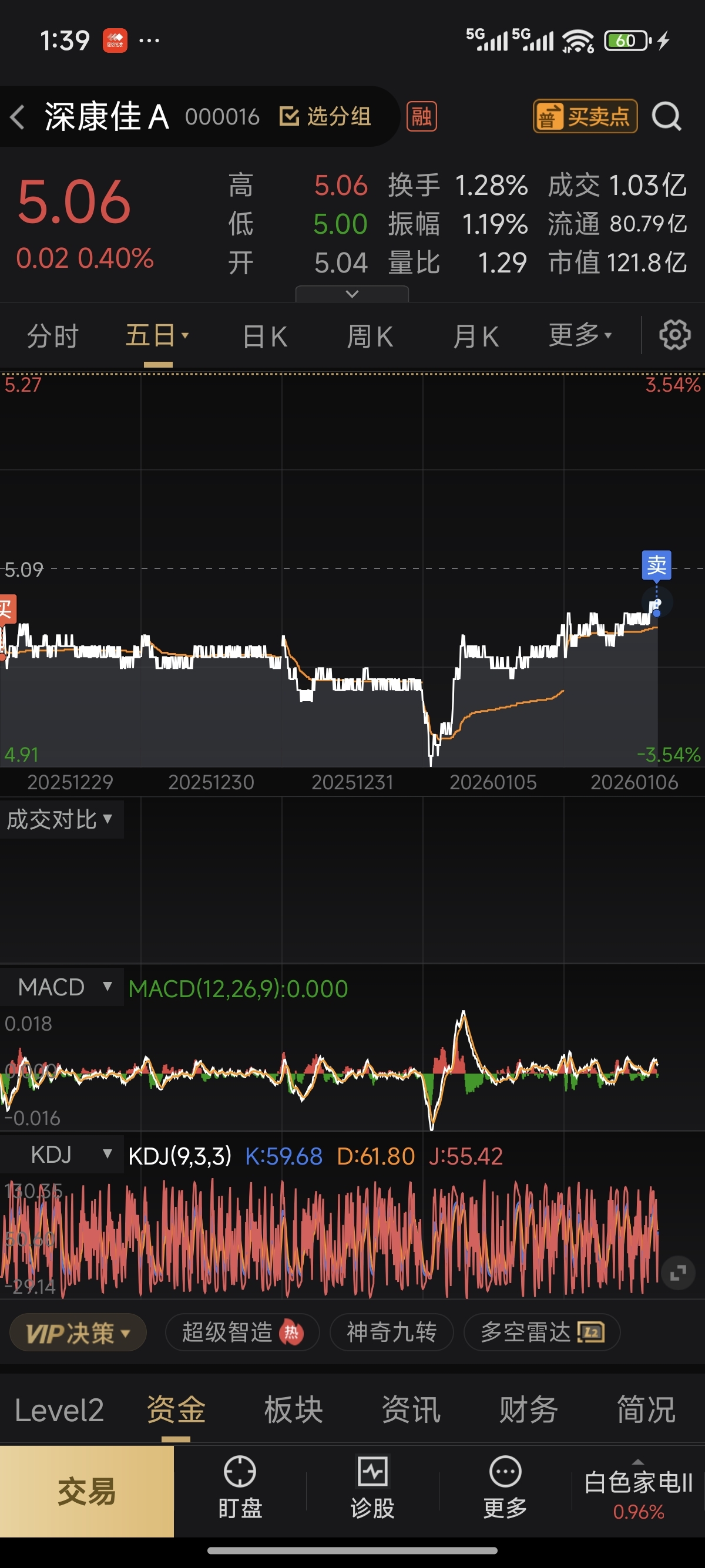 $深康佳A(SZ000016)$ t了一下 搁了五天手上留点现金