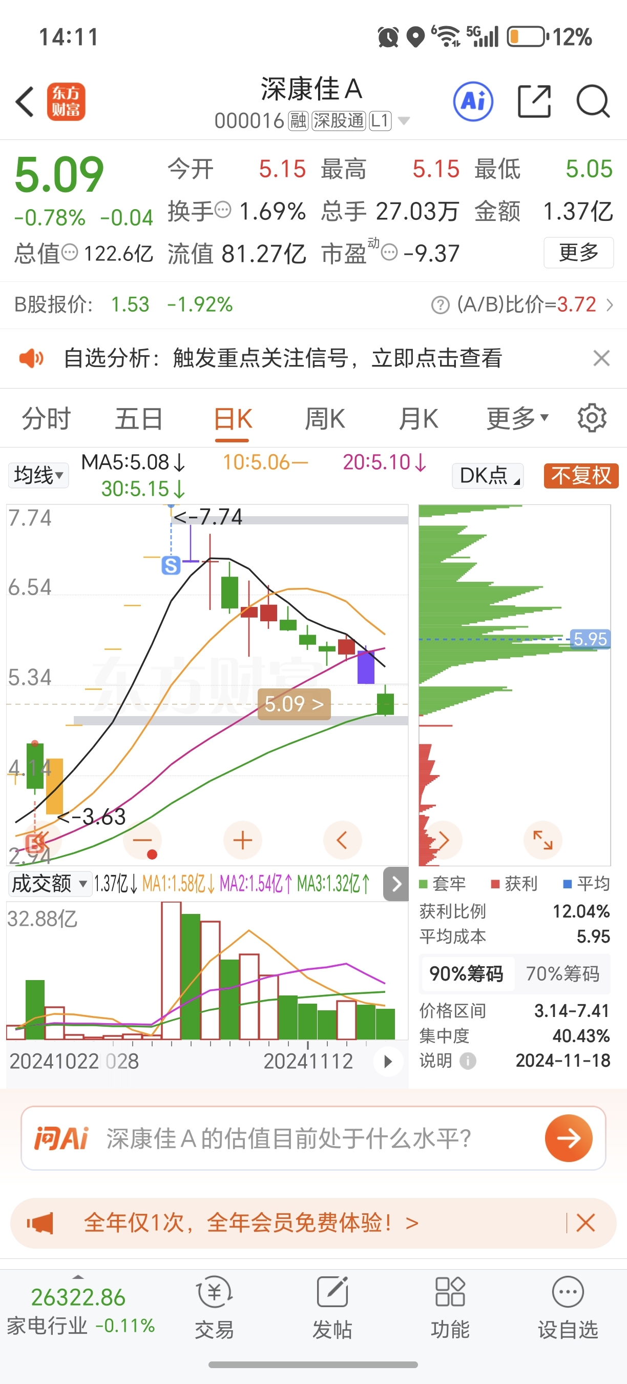 $深康佳A(SZ000016)$ 怀念2024年10月份,那是我最好的一次操作了,在深康佳A吃了将近6个板,最高点跑掉,手里持有的5只票全部涨停且4只有连板表现,希望2026年,能再续前缘,深康佳A你也沉浸的太久了,存储芯片和重组预期概念也没有带动你分毫,5元这个位置你也待的太久了,在等什么呢?