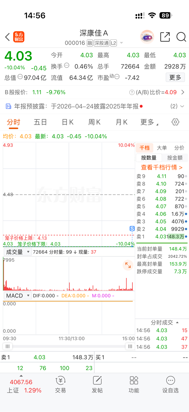$深康佳A(SZ000016)$ 55 分居然成交了,亏 20 个点,等你 st,我还会回来的。