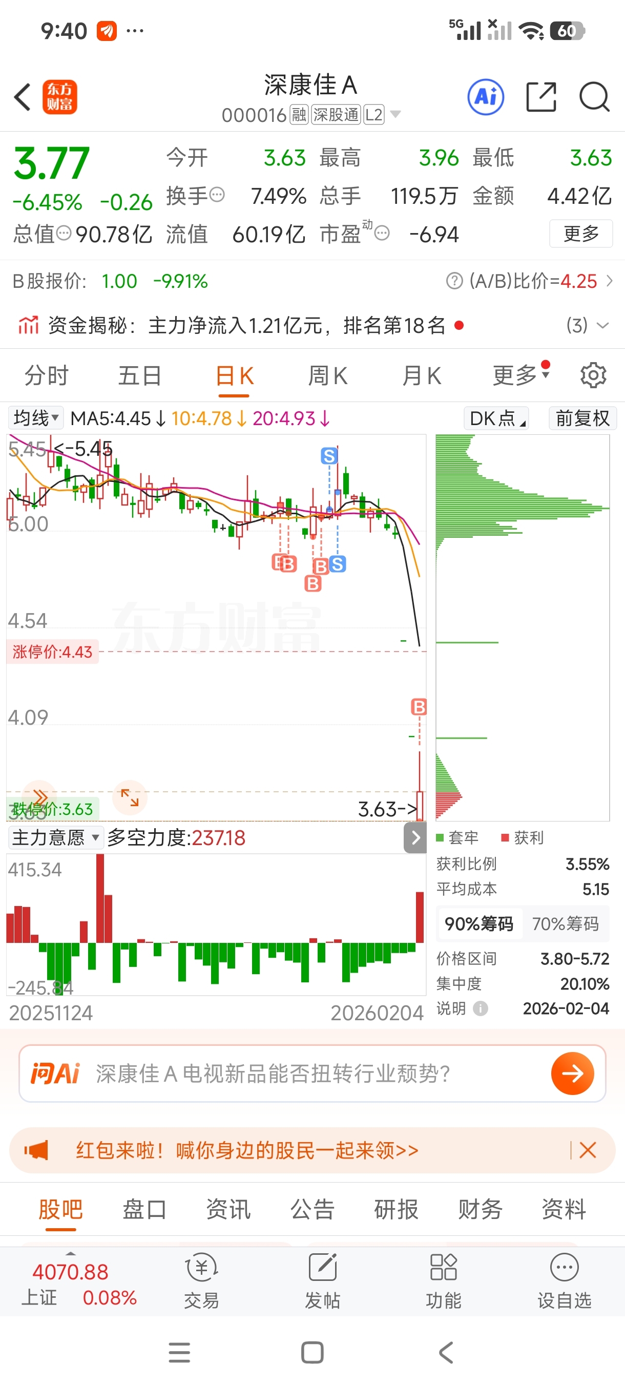 $深康佳A(SZ000016)$ 你恐慌,我贪婪。