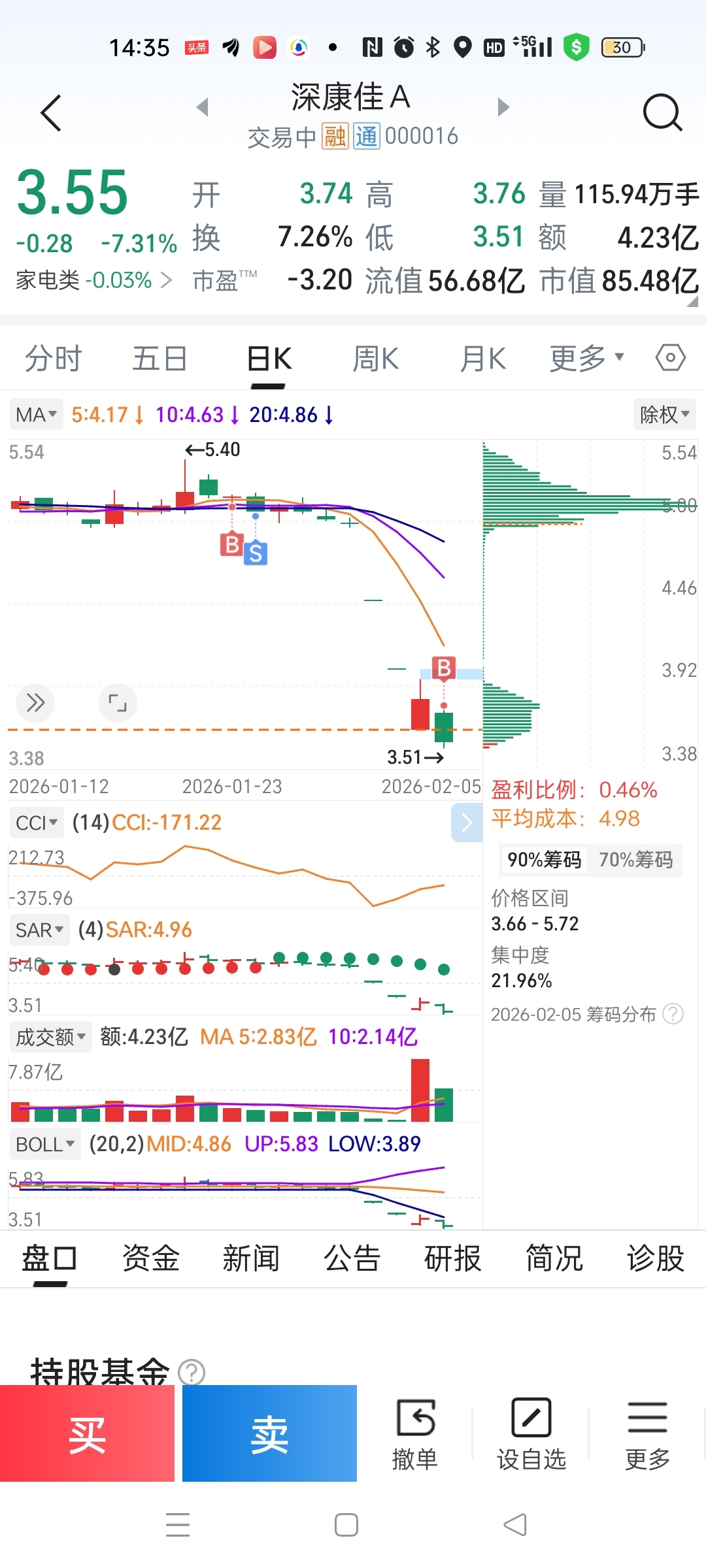 $深康佳A(SZ000016)$