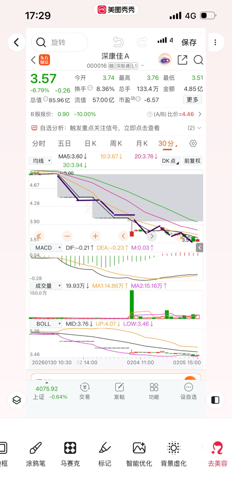 $深康佳A(SZ000016)$ 我被套住了,倒无所谓,我一个短线的,明天我就可以割肉,我给你们分析的盘面如下,可不可取你问自己行分析,时间空间量价关系,分五浪下跌,第五浪分五小浪,明天我要的是高开,如果不是,那就是我错了,或者横盘,或者反弹,我能帮你们的就这么多了,因为不确定因群太多,我出来喝酒了,懒得画图,草稿,谁的钱都是钱,唱空的可能是做空的,无所谓,怎么赚钱是能力,不反驳谁,