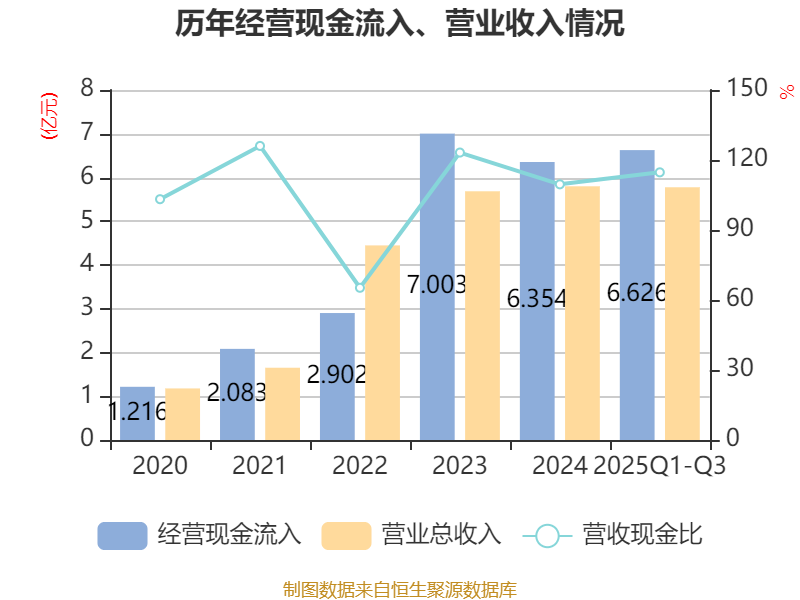 2025年前三季度,公司流动比率为5.68,速动比率为3.49。