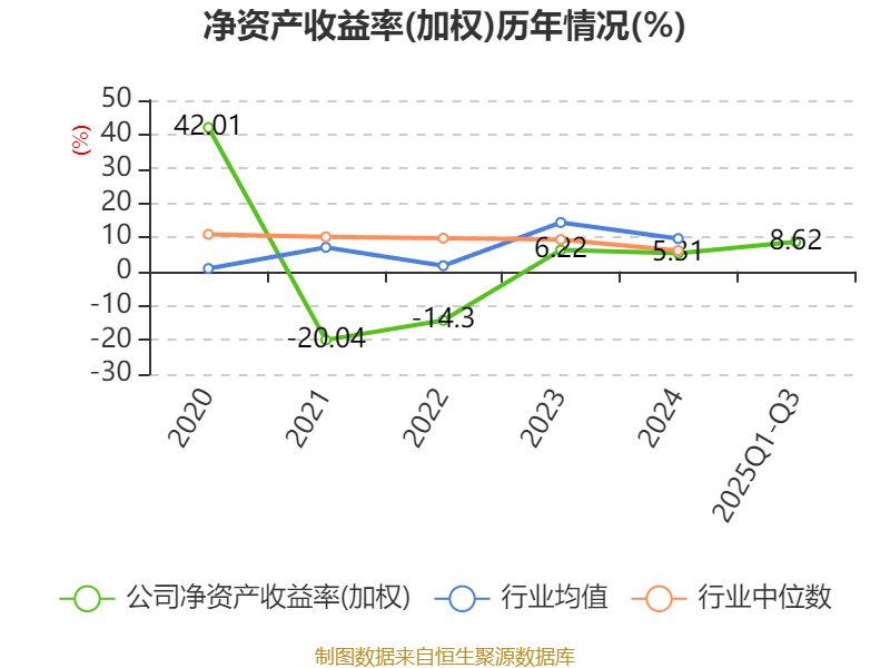 盈利能力方面, 2025年前三季度公司加权平均净资产收益率为8.62%,同比上升6.24个百分点。公司2025年前三季度投入资本回报率为7.99%,较上年同期上升5.81个百分点。