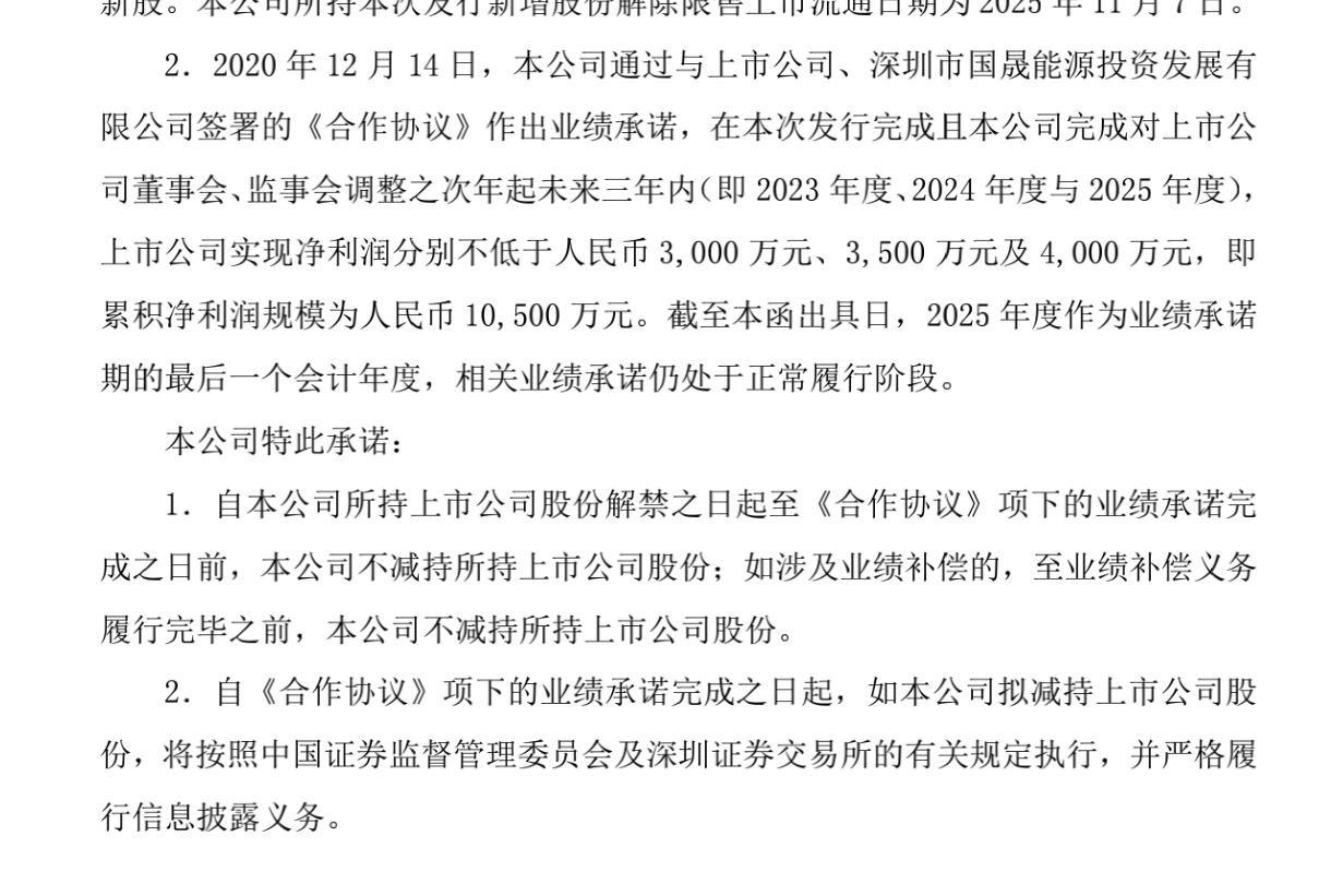 $深中华A(SZ000017)$ 万胜实业做出的业绩承诺