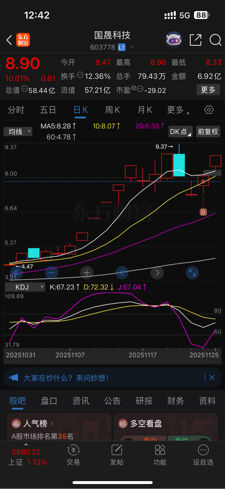 敲里哇,不是国晟科技顶着,今天近5000家上涨,我差点儿就绿了。