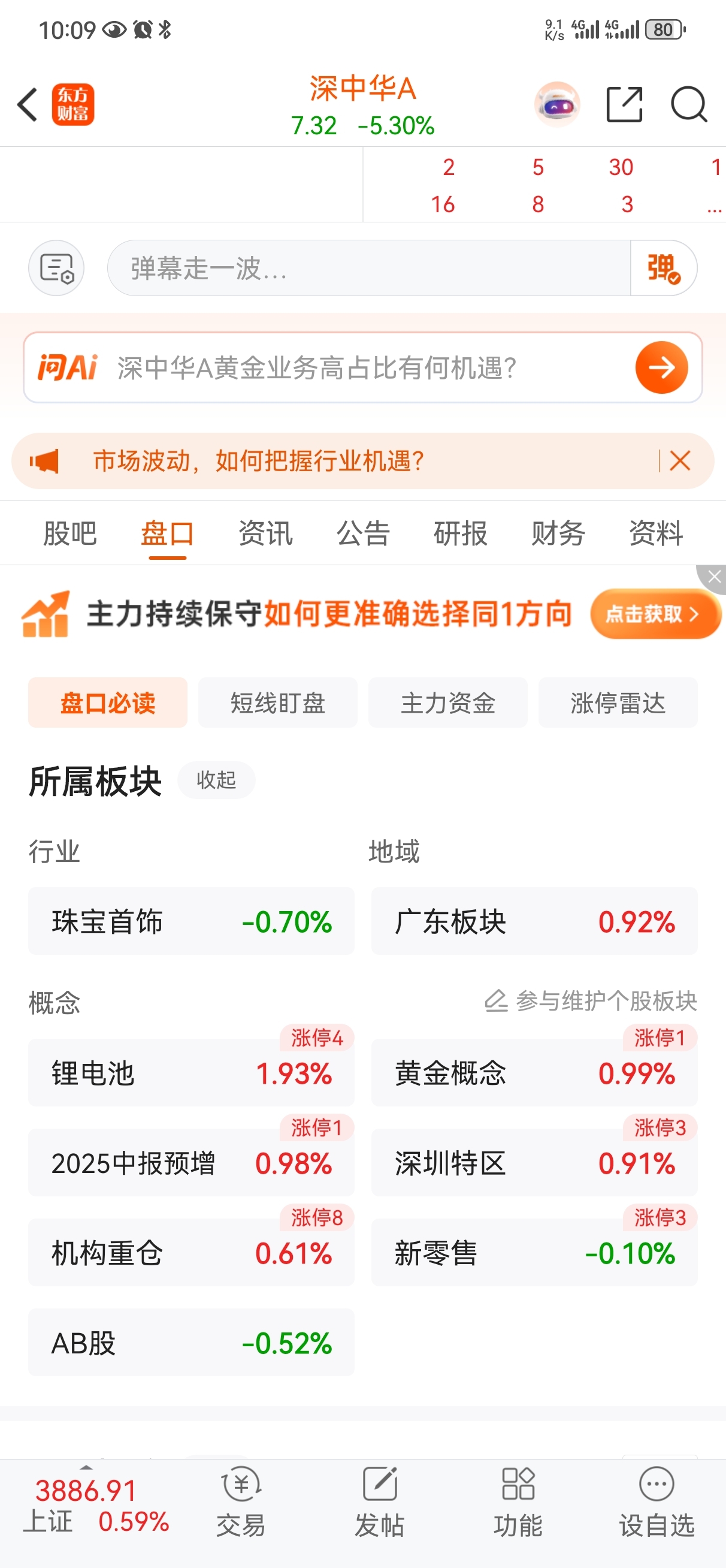 $深中华A(SZ000017)$ 黄金珠宝收入占比99,黄金涨了一个点,你都快跌停了