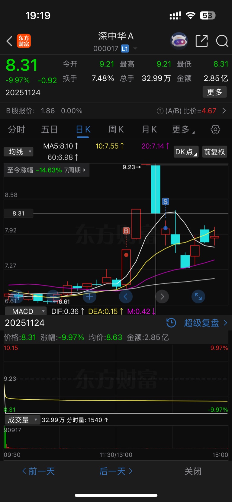 $深中华A(SZ000017)$ 其实我是很纳闷的,前一天还一字涨停,第二天开盘直接秒到地板,这样杀下来,主力真的能出完么?还是制造恐慌,捡低价筹码,还有后续?我一玩短线的理解不了。你慢慢振吧,如果还有拉升,出现我的买点,我照样还割你!