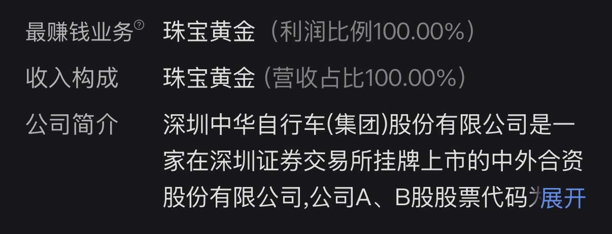 珠宝黄金业务占比100%,居然叫个自行车抬头,名字都取不好,难怪你不涨,大家来重