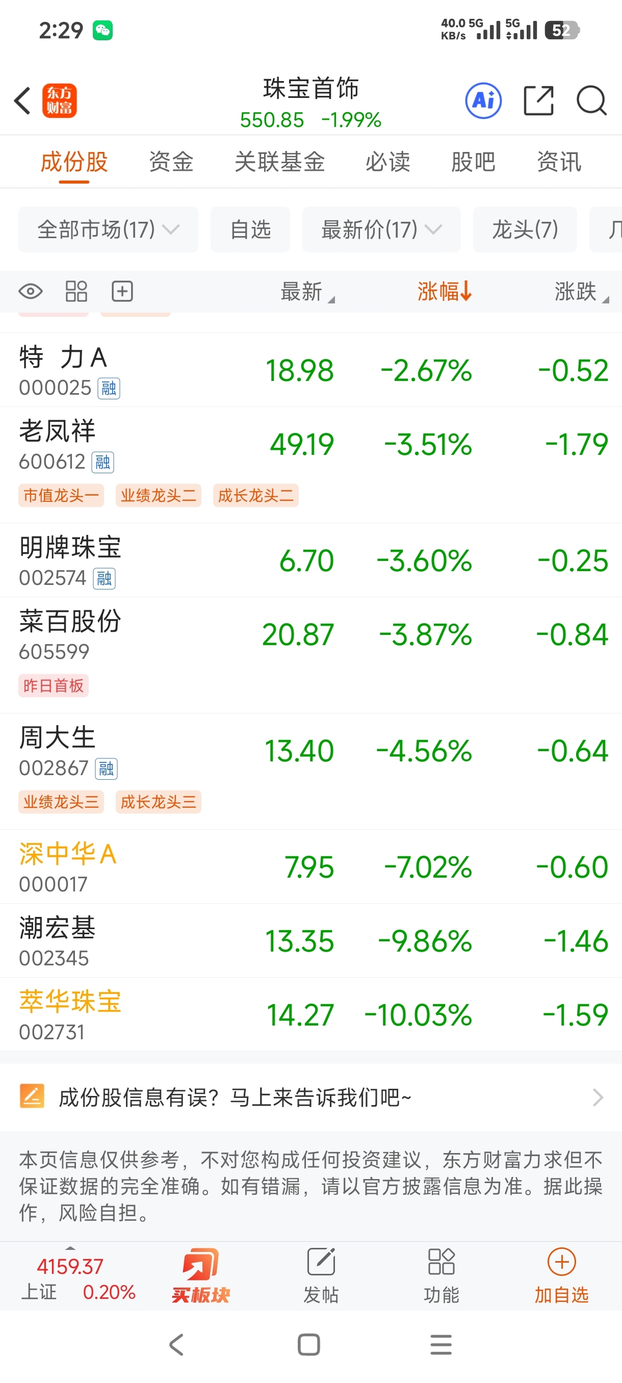 $深中华A(SZ000017)$ 倒数第三的跌幅,别人还是有涨停后跌停的。