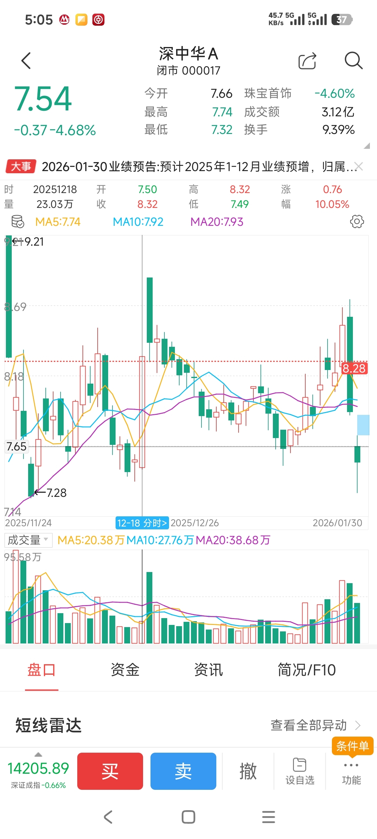 $深中华A(SZ000017)$ 假如下周不能像12月18日那样直接反包一个涨停板,那整个二月都是横盘阴跌,偶尔涨一两分钱来磨了。这两天跌得太伤了,周三赚4%的时候贪心没走,实亏8%真的一点办法都没有。
