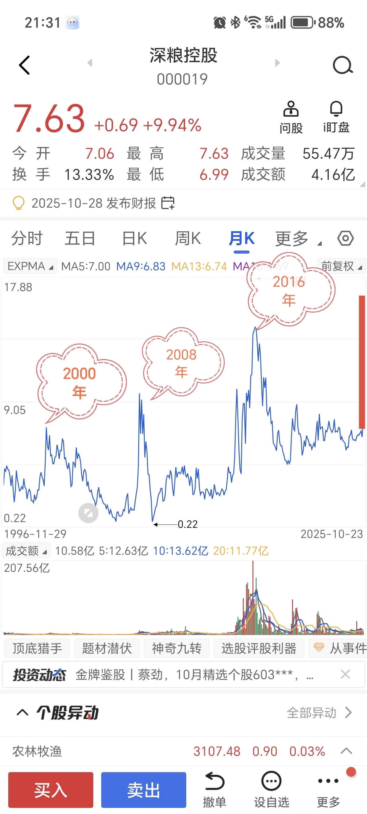 $深粮控股(SZ000019)$ 此股每八年一次大行情
