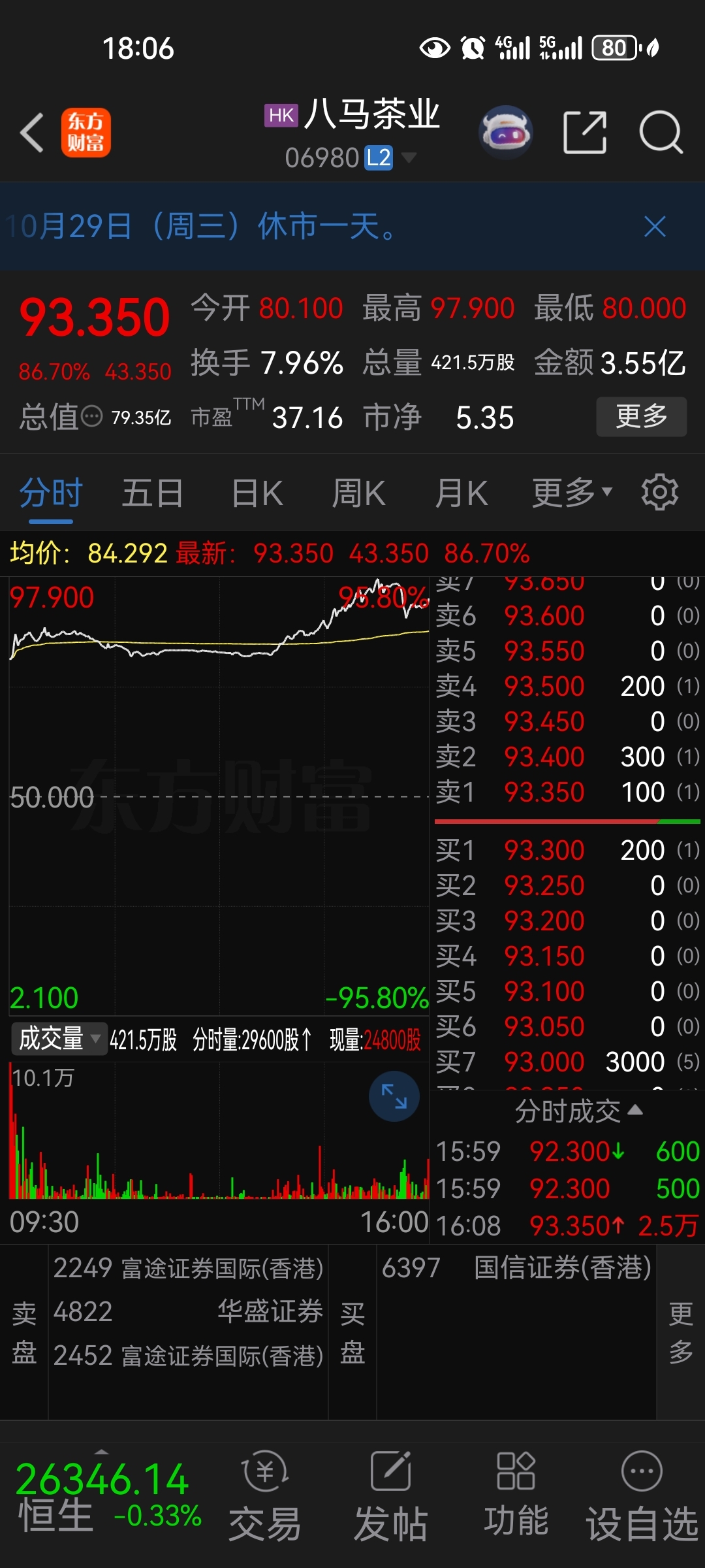 八马茶业上市首日大涨80多个点