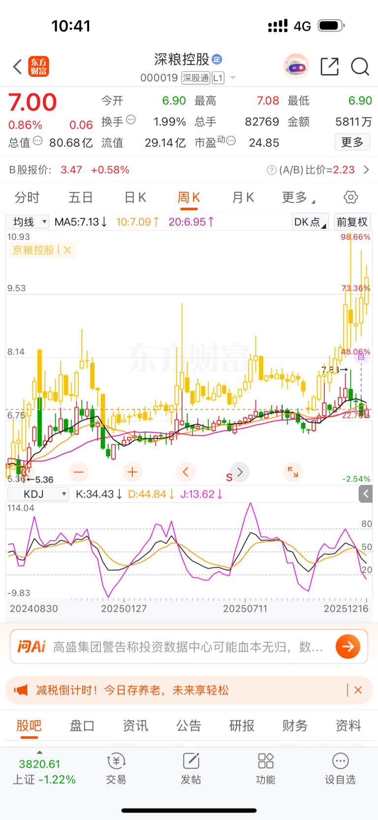 $深粮控股(SZ000019)$ 跟京粮控股周线相差7个涨停板