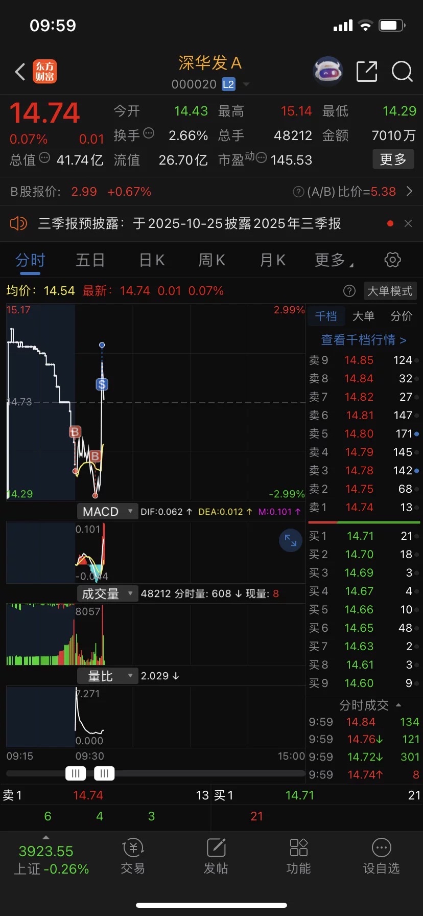 $深华发A(SZ000020)$  15.1元已赚钱卖出