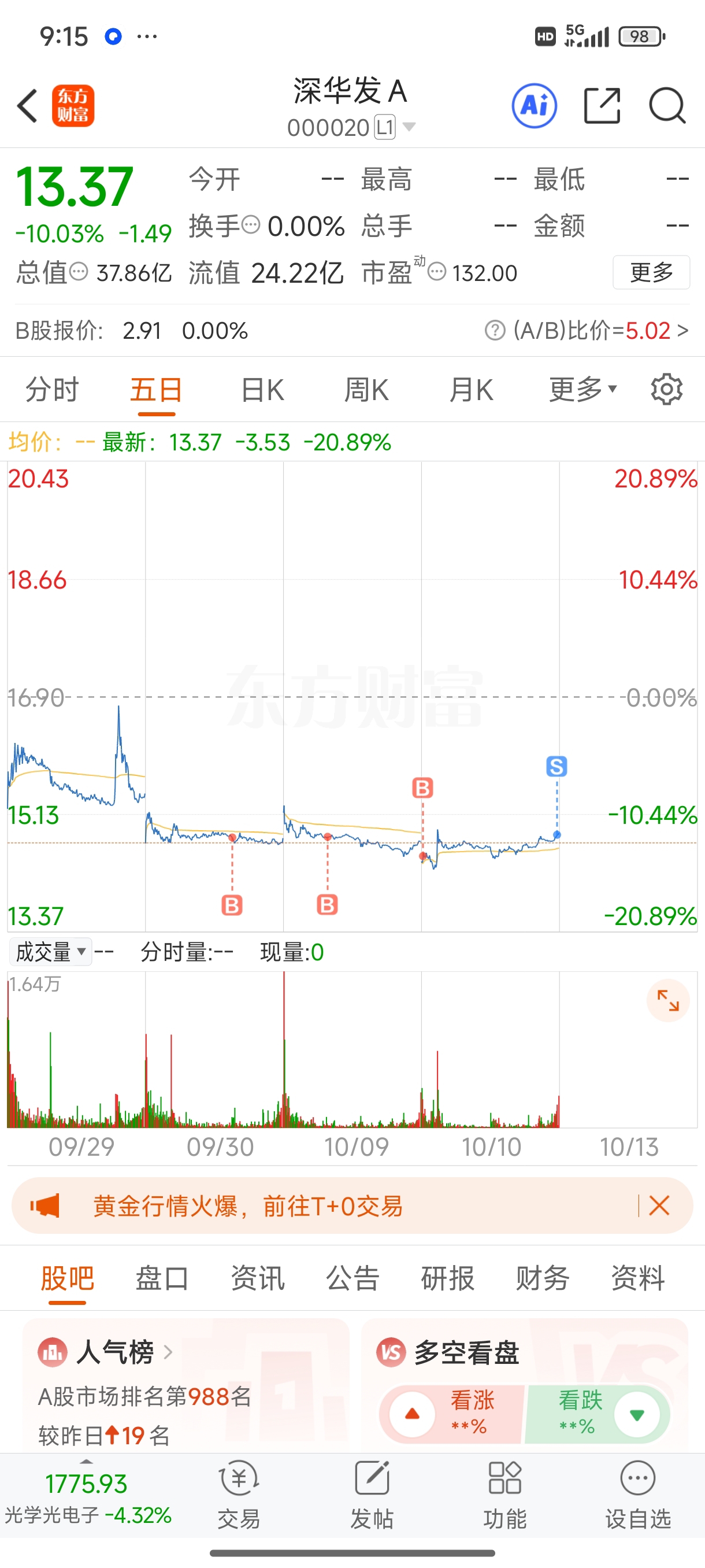 $深华发A(SZ000020)$ 卧槽,卧槽,卧槽,我命休矣…