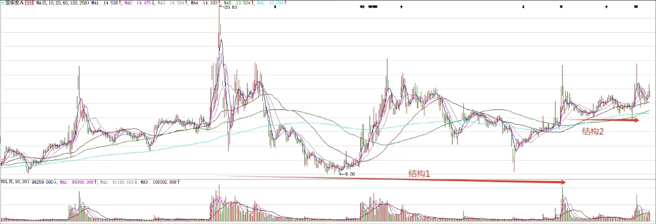 今天小幅震荡调整,走出小阴线,走势还是非常好的。目前,日线级别的两条短期均线金叉,意味着调整要结束了。所以,下周一股价大概率结束调整。图中标注的大型结构1突破,意味着股价处在比较大的上涨趋势。结构2是结构1突破后的回踩,意味着后期有波段上涨。近期的震荡,构筑了结构3,昨天已经实现有效突破。所以,波段上涨箭在弦上。