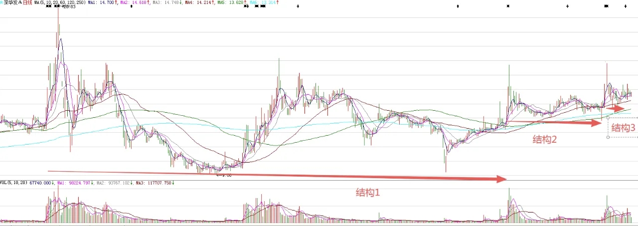 今天小幅度震荡,走出了企稳信号,符合预期。短线来看,调整到位,下周有望企稳回升。最近几个交易日的震荡,大概率形成新的小型潜在结构,这是结构3突破后的回踩?图中标注的大型结构1突破,意味着股价处在比较大的上涨趋势。结构2是结构1突破后的回踩,意味着后期有波段上涨。结构3是结构2突破后的回踩,意味着波段上涨不远了。接下来,股价大概率开启新的波段上涨。