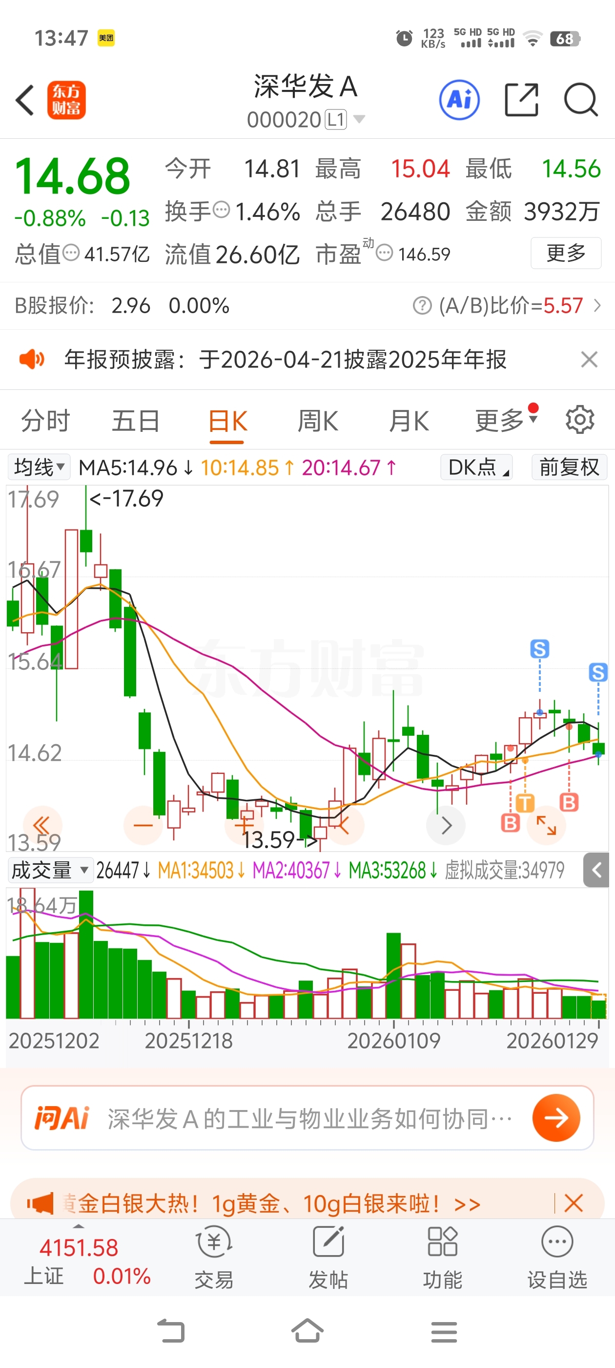 $深华发A(SZ000020)$ 拿了几天浪费我时间,亏了我手术费 换股