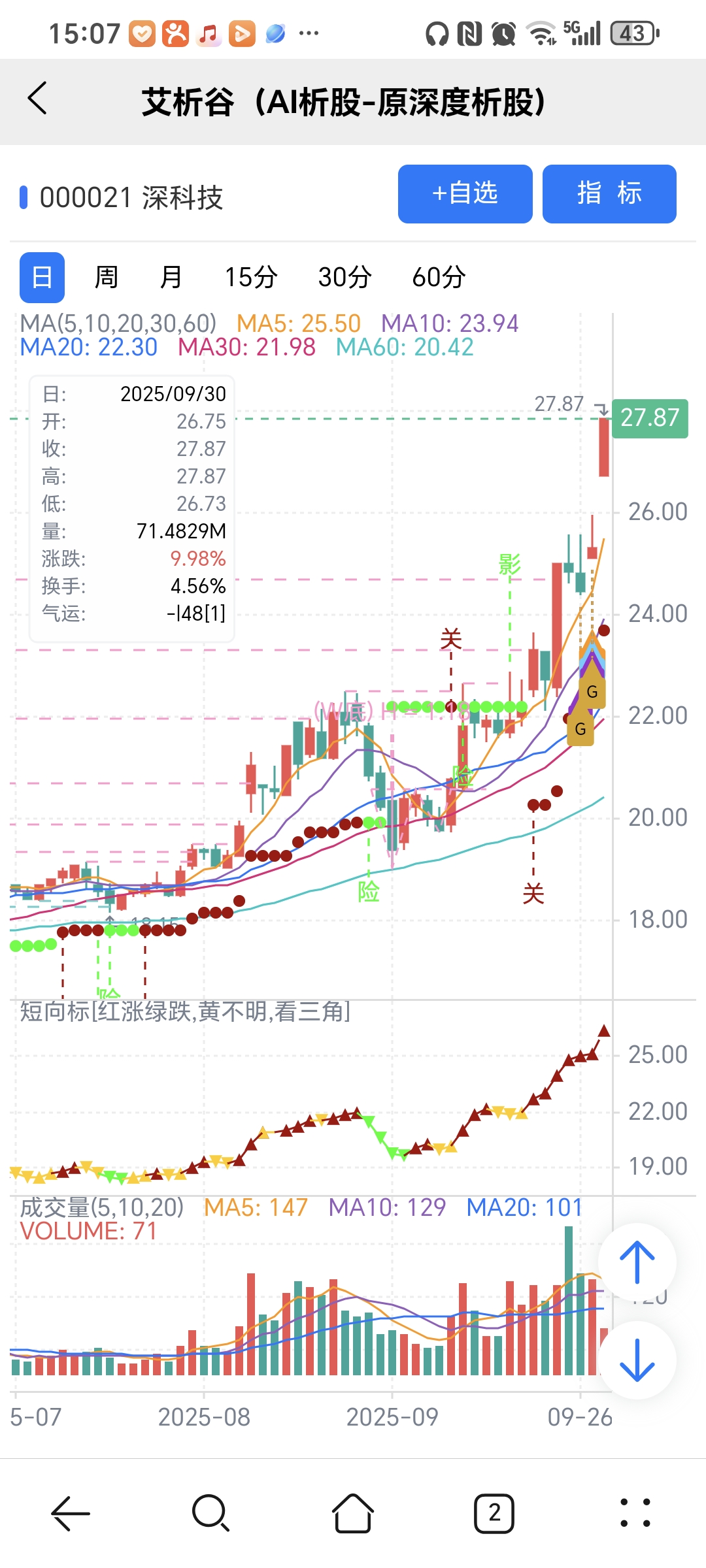 图中A、B、G、L 关注标记是对应AI选股模型当天下午2点多给出。