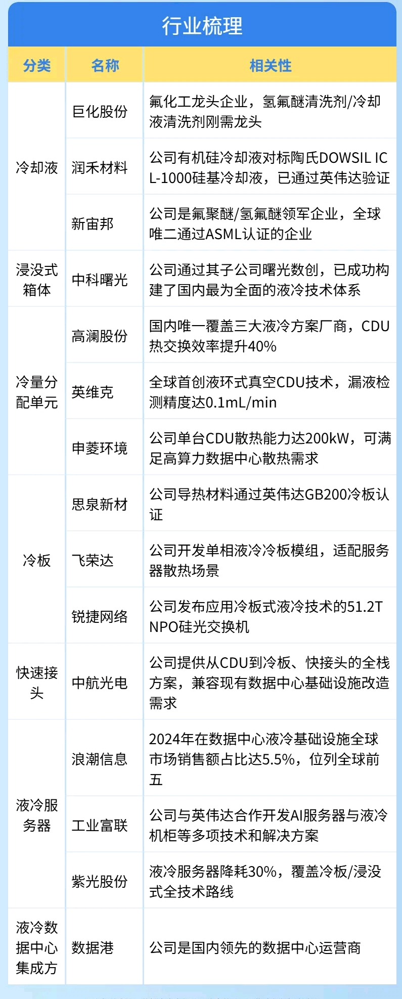 - 淳中科技:中国大陆唯一进入英伟达GPU液冷检测设备供应链的企业,为H100/GB200/GB300提供定制化液冷测试平台和微通道冷头技术。