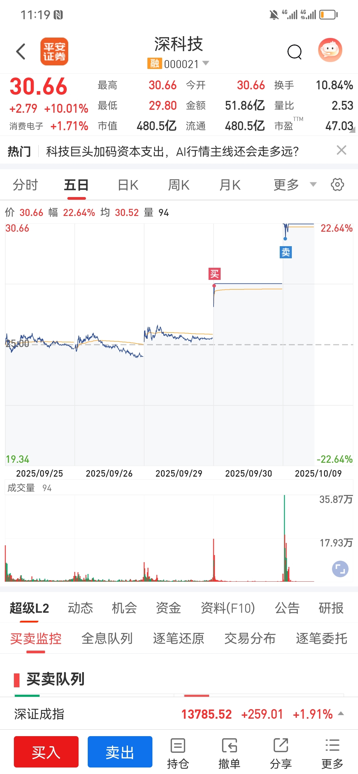 开盘一字板好开心借了个电话后看到炸板了,再看看卖单还在增加,我就跑了,去了上海电