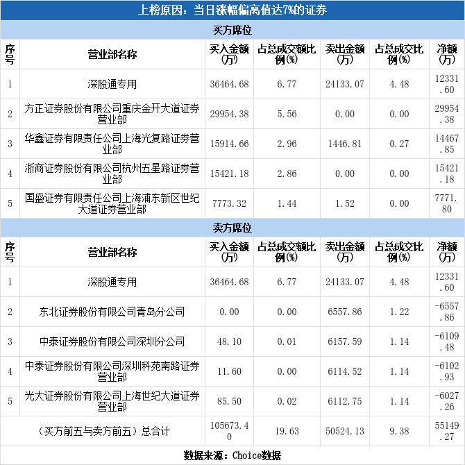 深股通现身龙虎榜,深科技涨停(10-09)
