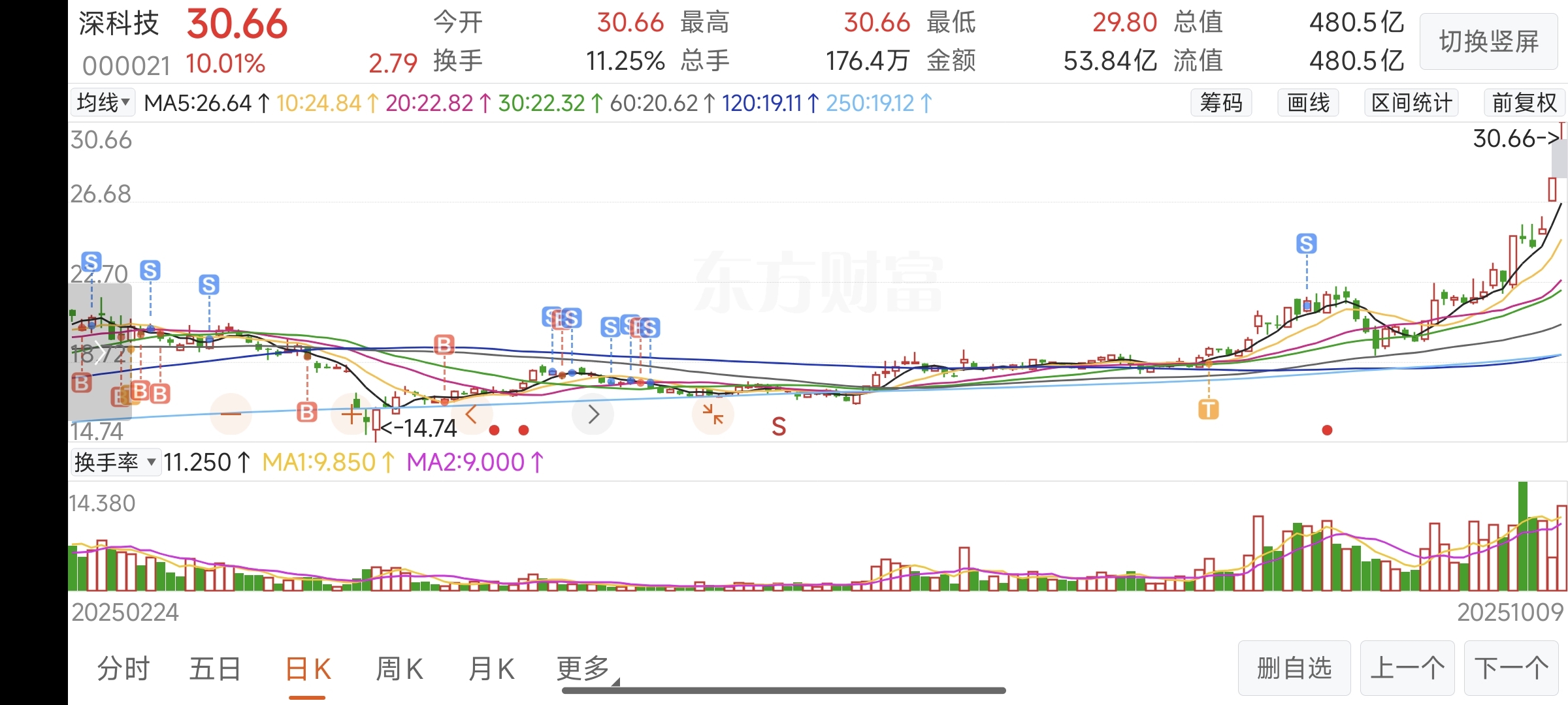 $深科技(SZ000021)$ 拿了半年,卖掉之后开心两周,觉得卖对了,现在真的是。。卖点没问题,关键是回调我没买进阿,等等我,我还没有上车