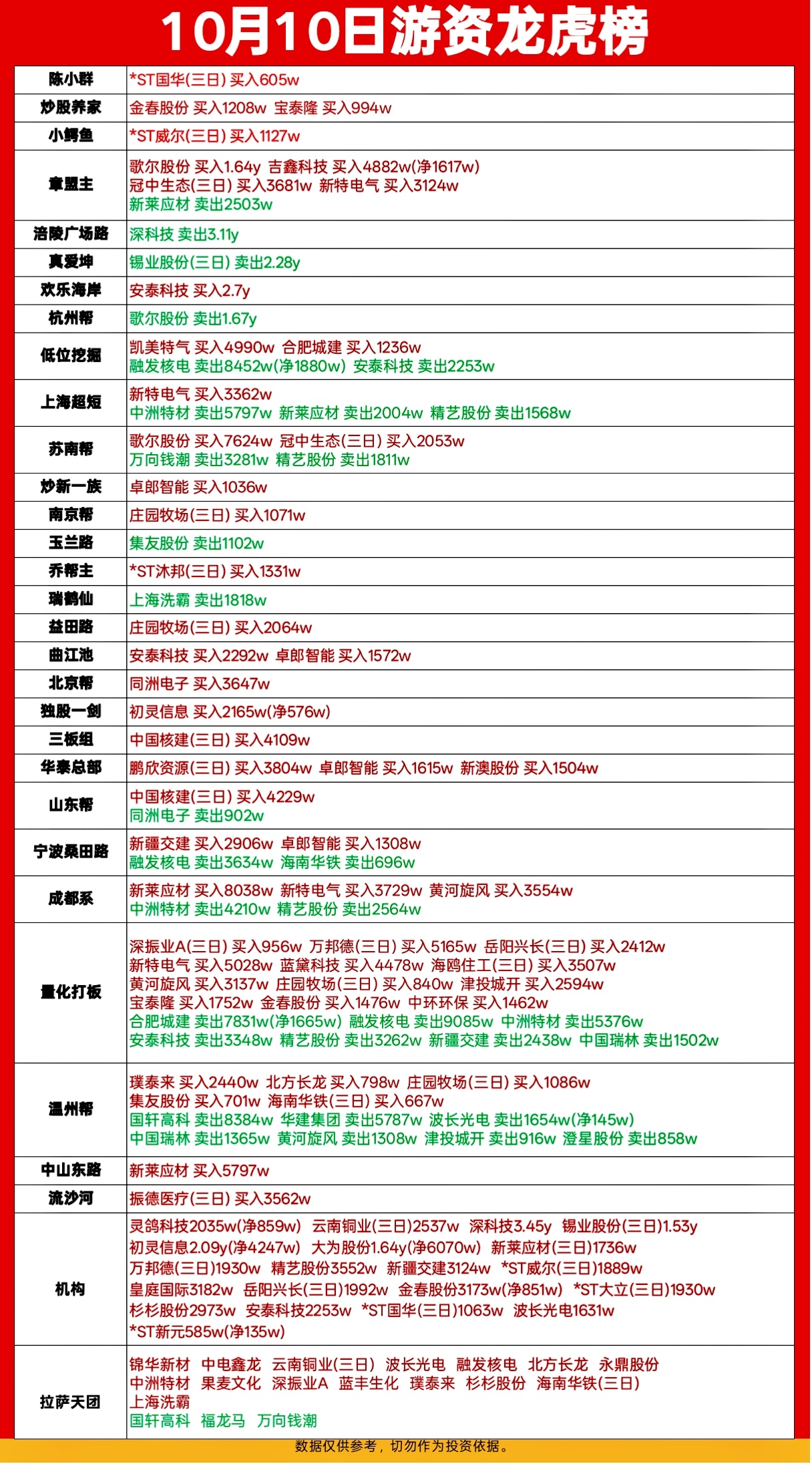 10.10游资龙虎榜,小鳄鱼章盟主涪陵广场路上榜。刚刚图片上传失败了,重新发下。