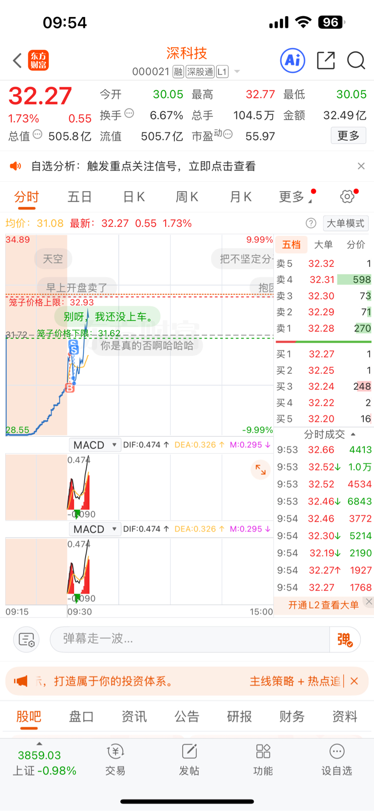 $深科技(SZ000021)$ 明明非常看好,看到另外半仓的上海早上拉就水下割了去~唉