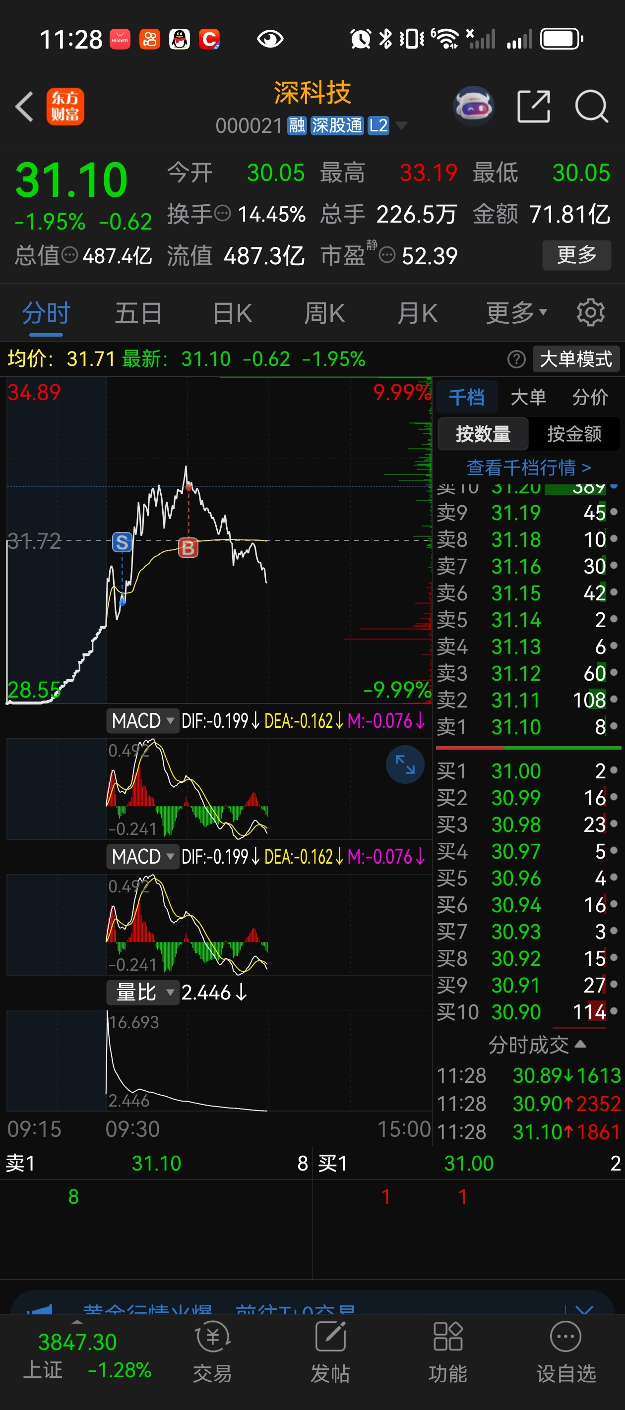 $深科技(SZ000021)$ 这股票能玩???跟管控账户一样。。。