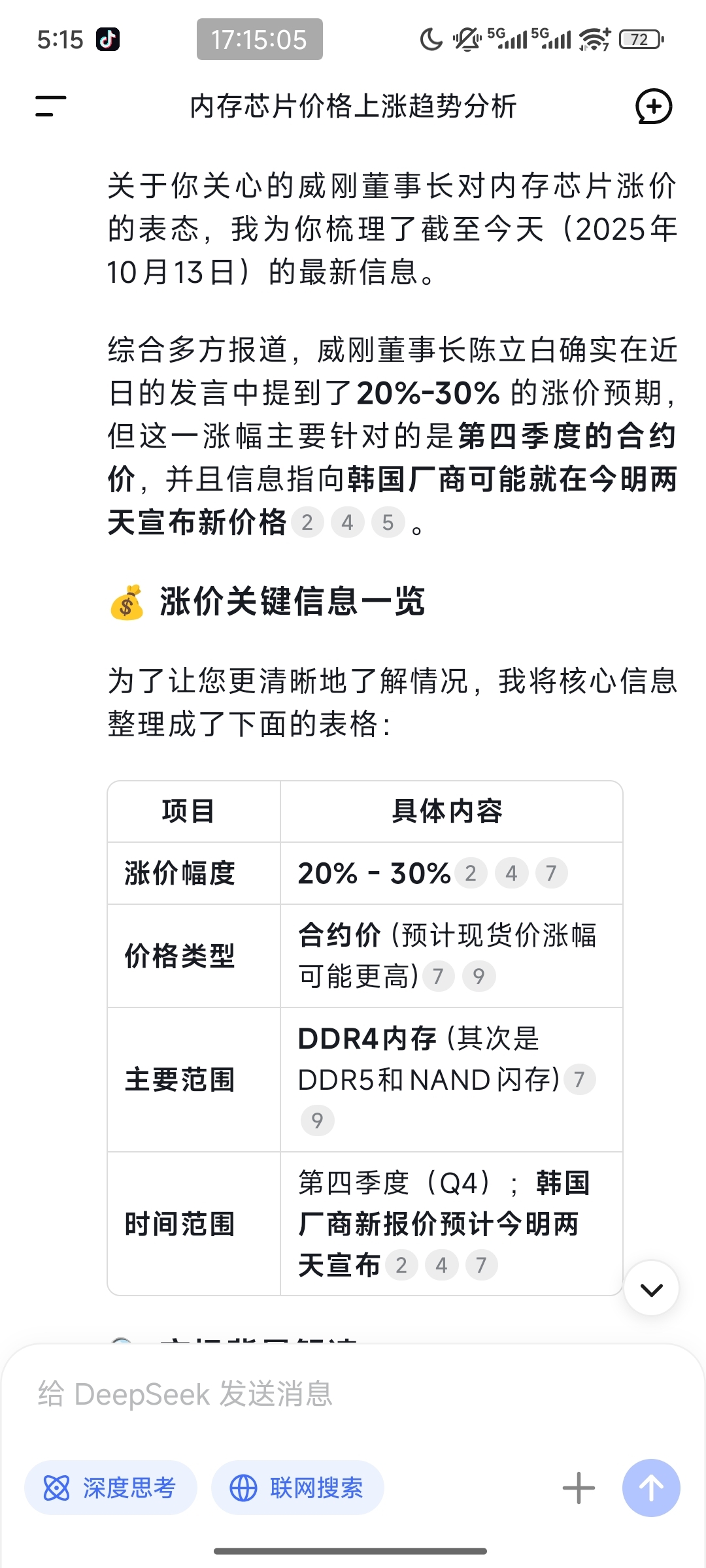 $深科技(SZ000021)$ 这两天内存芯片价格又要大幅上调20~30%